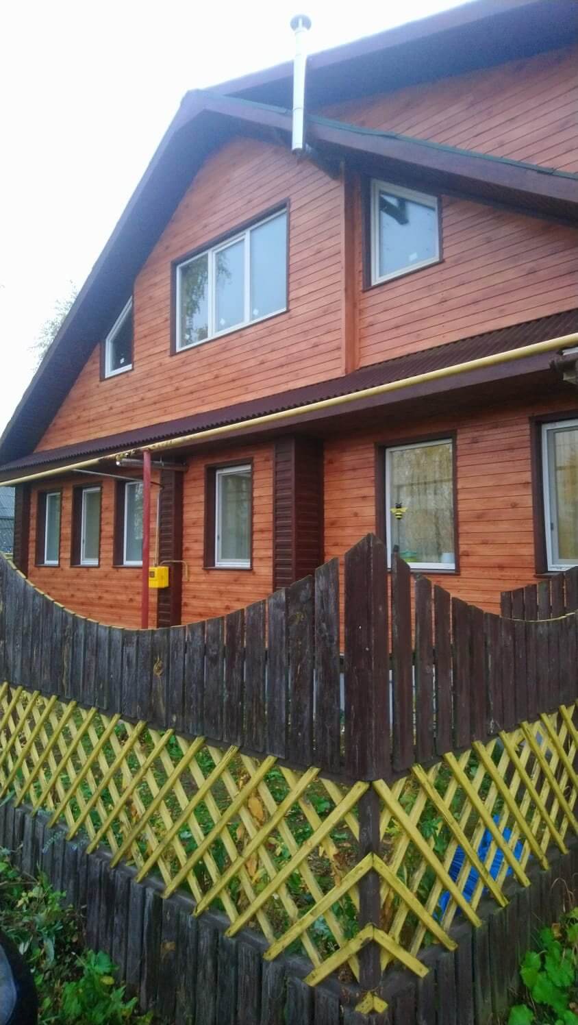 Профнастил С-8 в древесном оттенке "Золотое Дерево" (Printech, Корея) на фасаде дома