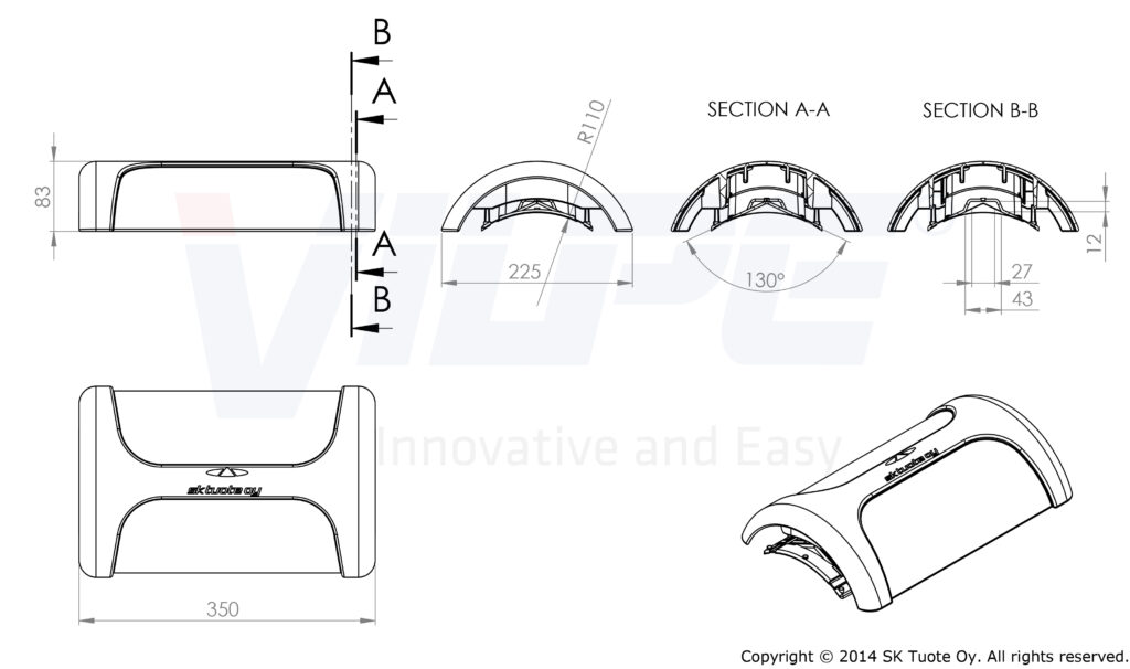 • Размеры: 350 х 225 мм, отверстие вентиля соответствует диаметру 160 мм.
