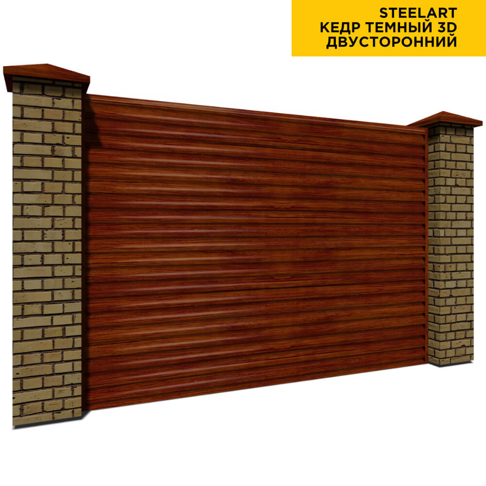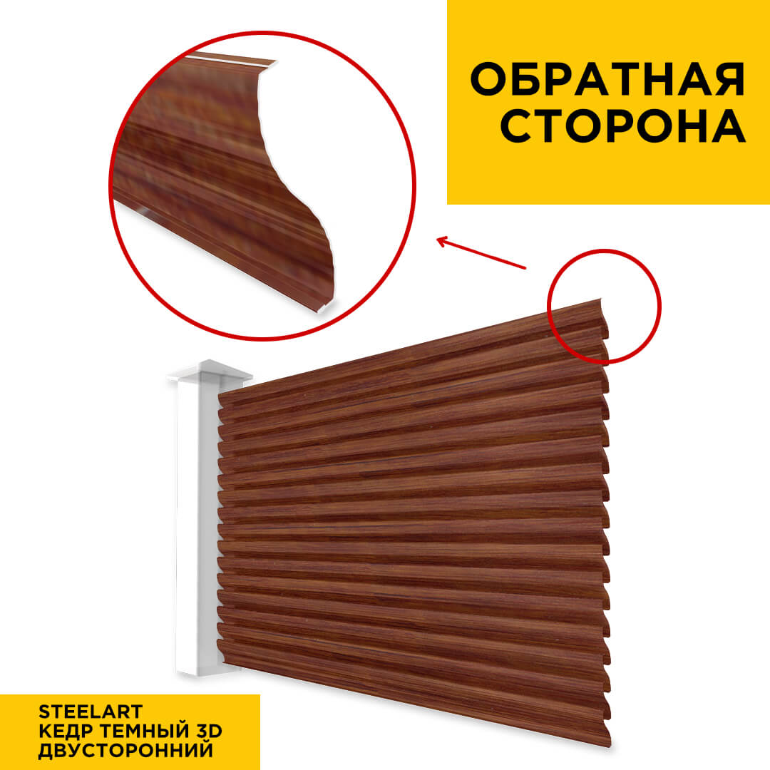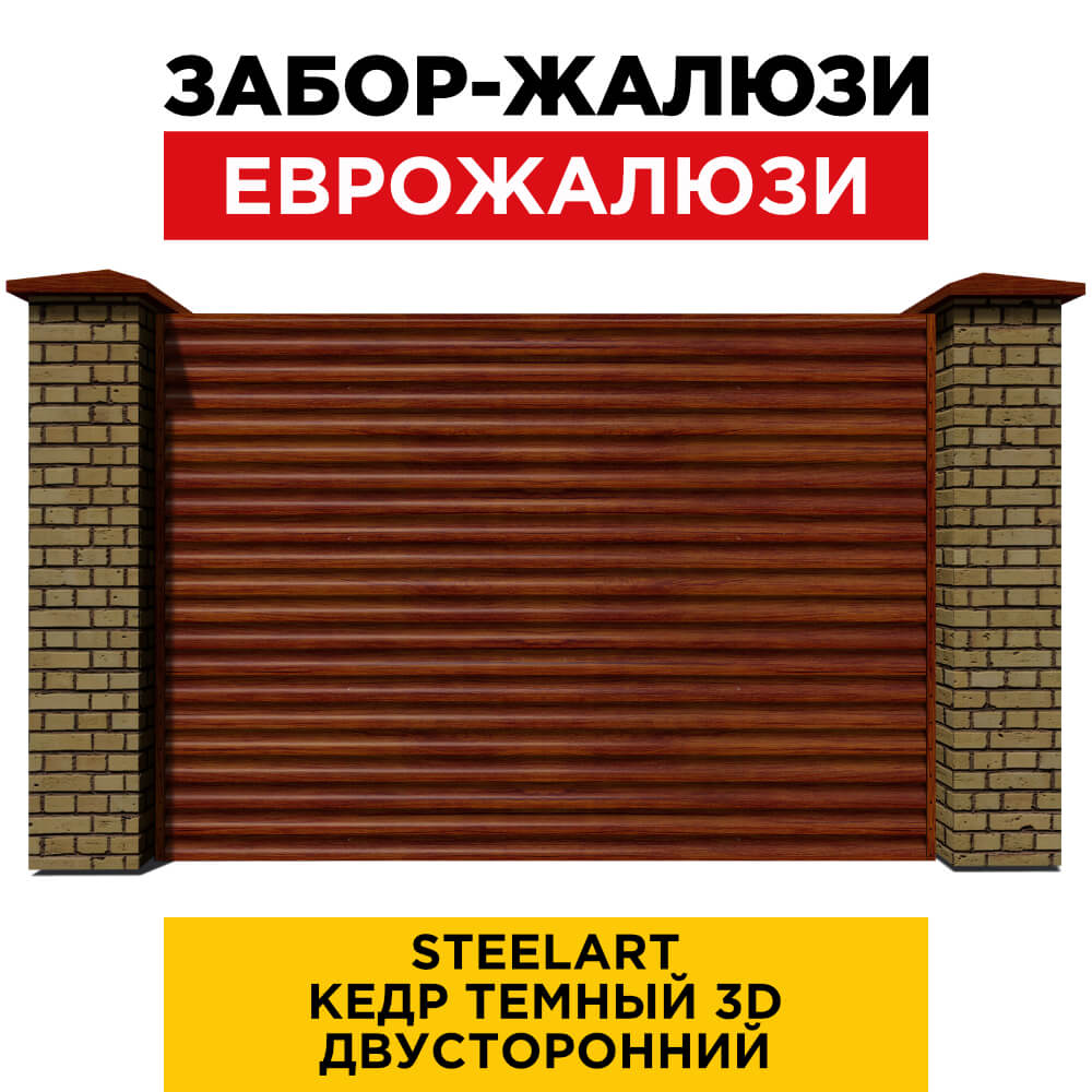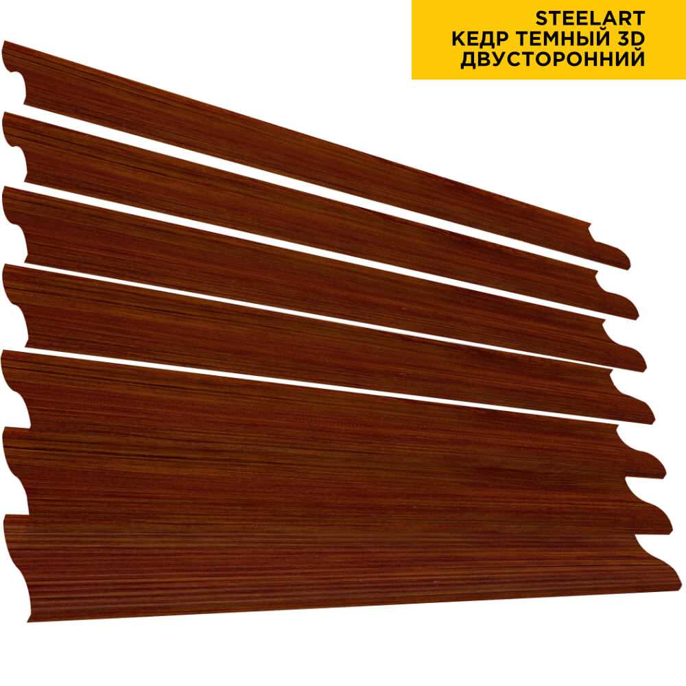 Ламель Еврожалюзи металлическая S-образная, цвет под дерево Кедр Темный 3D SteelArt Россия двухстороннее покрытие, длина любая кратно 1см под заказ - для забора-жалюзи, беседки, перголы в Элисте